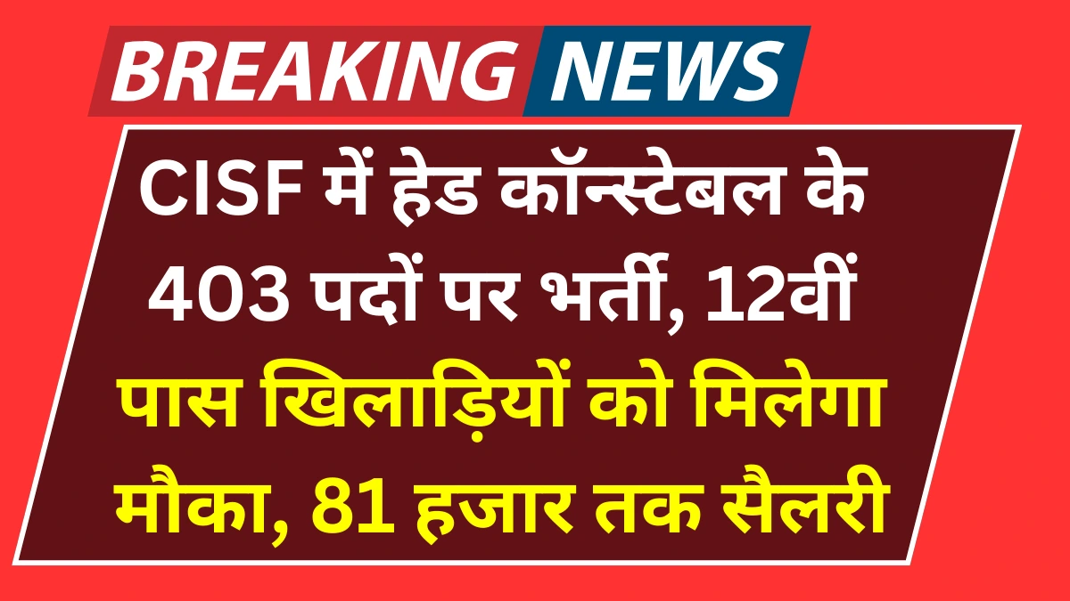 CISF Recruitment 2025: अगर आप देश की सेवा के साथ-साथ खेलों में भी रुचि रखते हैं, तो आपके लिए सुनहरा अवसर है। केंद्रीय औद्योगिक सुरक्षा बल (CISF) ने स्पोर्ट्स कोटे के तहत हेड कॉन्स्टेबल (जनरल ड्यूटी) के 403 पदों पर भर्ती का नोटिफिकेशन जारी किया है। यह भर्ती विशेष रूप से ऐसे खिलाड़ियों के लिए निकाली गई है, जिन्होंने राज्य, राष्ट्रीय या अंतरराष्ट्रीय स्तर पर किसी मान्यता प्राप्त प्रतियोगिता में भाग लिया है।