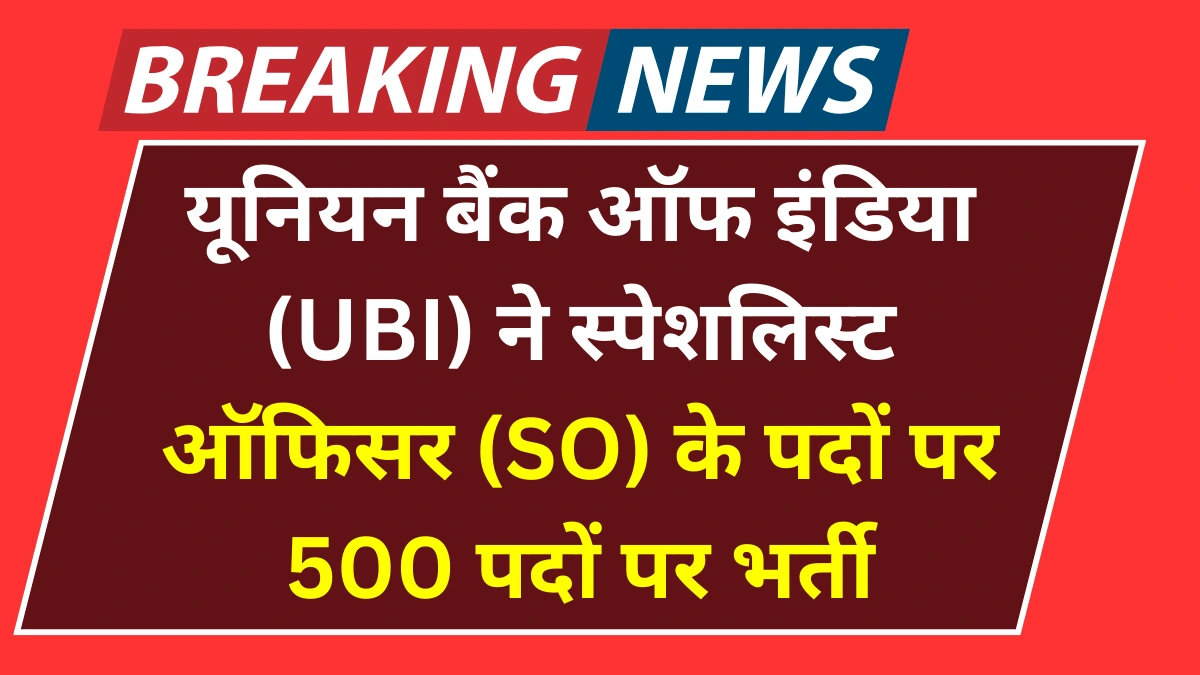 Union Bank of India Recruitment: यूनियन बैंक ऑफ इंडिया (UBI) ने स्पेशलिस्ट ऑफिसर (SO) के पदों पर भर्ती का ऐलान किया है। इस भर्ती में कुल 500 पदों पर चयन किया जाएगा। उम्मीदवारों को इन पदों के लिए आवेदन करने का मौका दिया जा रहा है, और आवेदन प्रक्रिया यूनियन बैंक ऑफ इंडिया की आधिकारिक वेबसाइट पर ऑनलाइन पूरी की जा सकती है। यह एक बेहतरीन अवसर है, खासकर उन उम्मीदवारों के लिए जो बैंकिंग क्षेत्र में अपना करियर बनाना चाहते हैं।